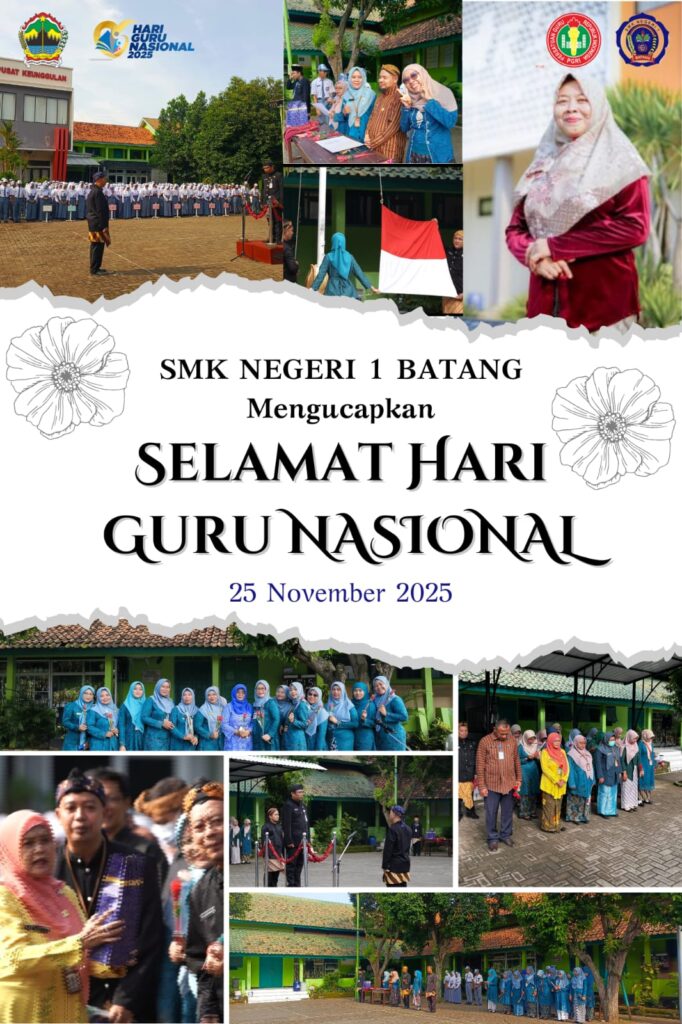 Sebuah momentum untuk mengenang, menghargai, dan merayakan peran guru sebagai pilar utama kemajuan bangsa. Di tengah perubahan zaman yang begitu cepat, guru tetap menjadi kompas yang menuntun generasi muda agar tidak tersesat dalam arus teknologi, informasi, dan tantangan global. SMK Negeri 1 Batang menyelenggarakan upacara peringata hari guru dengan petugas upacara dari bapak / ibu guru dan karyawan TU SMK Negeri 1 Batang di tengah upacara ada lagu hymne guru yang dinyanyikan oleh seluruh peserta upacara dan ada puisi untuk guru dari ketua OSIS. dikesempatan hari guru juga diberikan beberapa kategori penghargaan untuk bapak / ibu berprestasi, berdedikasi, tersabar, terbaik, terinspirasi melalui poling dari siswa siswi SMK Negeri 1 Batang.